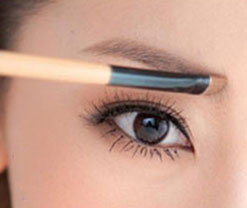 2、再蘸取深色眉粉,將眉刷豎起,描繪出眉毛下緣的輪廓,從距離眉頭1cm的位置一直拉到眉尾。