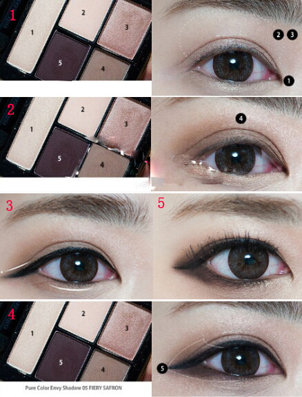 步驟4:用5號色眼影畫出眼尾,上下眼瞼的三角形區(qū)域,加重眼尾的色感,拉長雙眼。步驟5:夾翹睫毛后,用睫毛膏刷出根根分明的眼睫,如此這款眼妝就算是完成了哦!