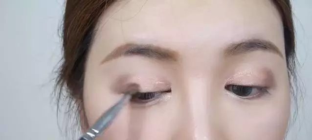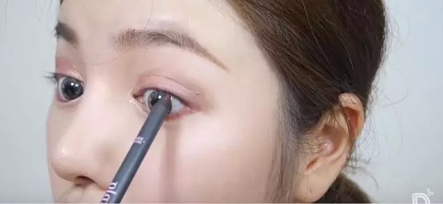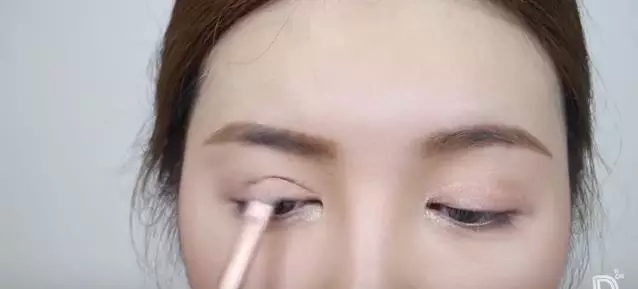 ▼然后用帶珠光的眼影棒涂在眼角,用手向后暈開。