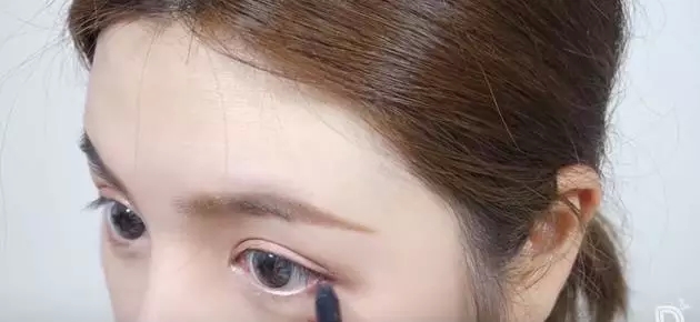▼然后用棕色的眼線筆畫一層細細的內眼線,在眼尾處微微加厚,不拉長。