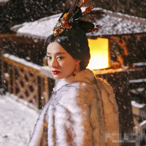 劇照中更是殺氣重重,啞光紅唇和纖長濃密的睫毛一看就是腹黑女,加上霸氣的貂毛服飾,人物定位是好是壞一眼就分明。