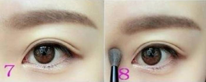4、用眉粉一號棕色來填充眉毛的后半部分,眉尾的顏色要剩于眉頭,注意兩部分顏色銜接要自然。