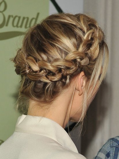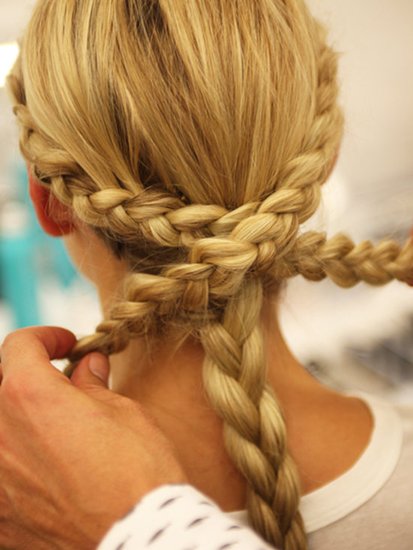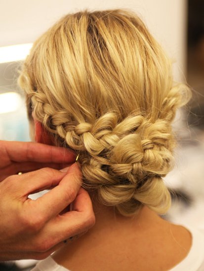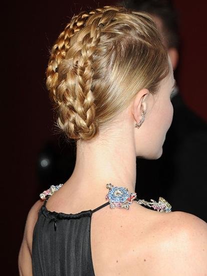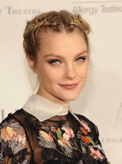 娃娃臉超模杰西卡·史丹 (Jessica Stam) 這組造型更加乖巧,實際上源自于她的編盤發發型。從中分兩側編成的麻花辮順勢盤起,更后在腦后進行固定的盤發方式來看,她的這款發型很成功。