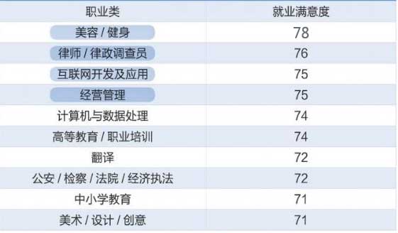 據《創業家》雜志報道就業滿意度是就業質量評價中主觀性較強的指標。隨著生活質量的提升,人們對美容、化妝、美甲文化需求增加,行業逐漸走向成熟使相關職業待遇提高,且工作相對輕松,這些都讓其就業滿意度相對較高。