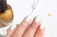 Step 2:用點(diǎn)鉆筆沾取金黃色珠光甲油,沿著指甲的周圍點(diǎn)上小波點(diǎn)。