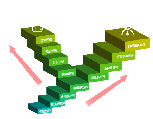 美容師的發(fā)展前途:美容師-專業(yè)美容師-高級美容師-美容顧問-美容店長-區(qū)域經(jīng)理-美容院創(chuàng)業(yè)
