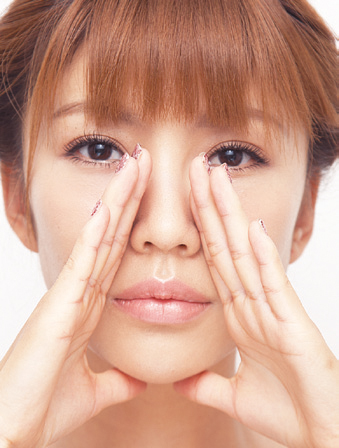然后將大拇指和食指?jìng)?cè)面緊貼皮膚,兩手緩緩朝耳朵方向移動(dòng)。