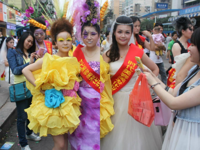 在時代學校化妝老師高超技藝的打磨之下,模特個個驚艷靚麗,使得無數路人紛紛前來拍照合影。