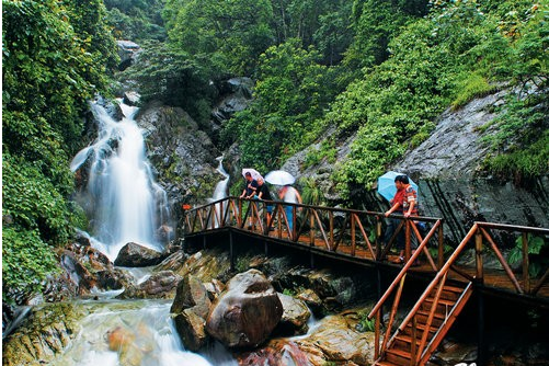 位于漂流河道東面,全長近4 Km,探險途中難關重重:有“高山鋼繩、橡皮艇過灘、垂直鐵梯攀登、勇闖高空鐵鏈橋、單人懸空驚險纜車”等。