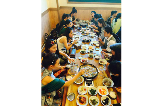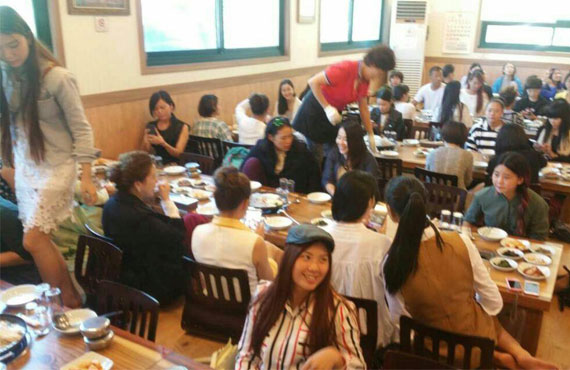 這次來韓國交流學習的學員還是很多,在老師的帶領下,我們吃上了韓國美味食物。